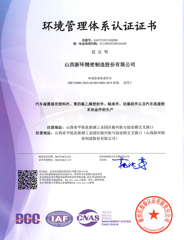 山西新環(huán)精密制造股份有限公司創(chuàng)建于1992年,是以研發(fā)、生產(chǎn)、銷售粉末冶金類、工程塑料類、橡膠制品類、氟塑類產(chǎn)品為主的高新技術(shù)企業(yè)。位于交通發(fā)達的山西省平陸縣城,距離三門峽市6 km,毗鄰隴海線,高鐵直達北京、上海、成都均為5小時左右,到達鄭州、西安皆為1小時,距離運城市機場35km。旗下子公司有:山西新環(huán)粉末冶金有限公司、山西新環(huán)科技有限公司、寧波新環(huán)氟塑料制品有限公司、寧波新環(huán)氟塑料制品有限公司軸業(yè)分公司、新勝達氟塑制品有限公司。現(xiàn)有高、精、尖設備120余臺套,固定資產(chǎn)總額1.8億元,年銷售額2.6億元。
